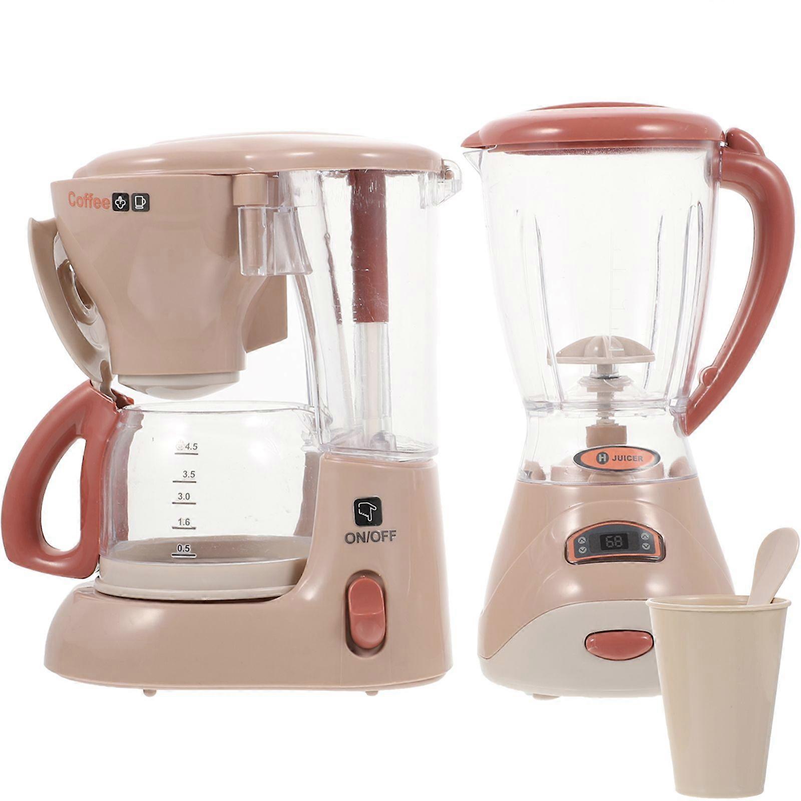 2Pcs Kids Kitchen Play Toy Kitchen Appliance Toy Coffee Machine Juicer Toy with Light and Sound