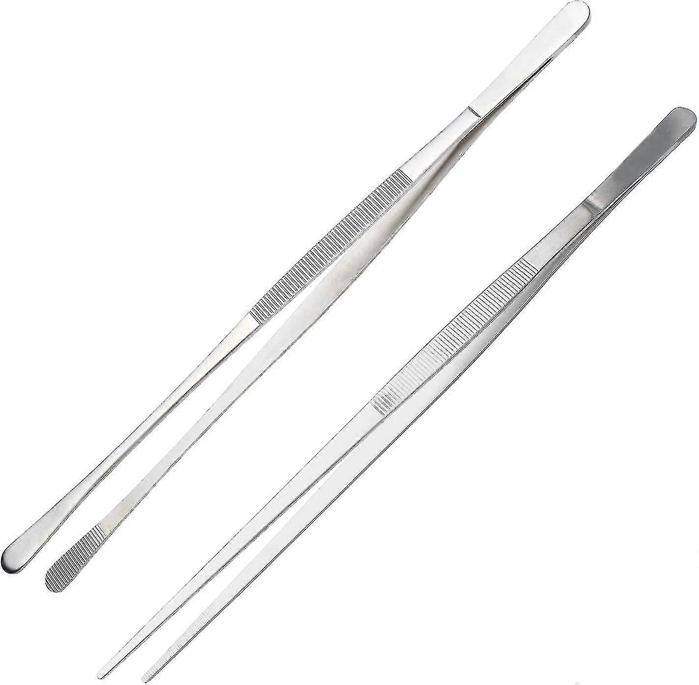 Product DescriptionMaterial: Stainless steelSize: 30cmStyle: round tweezers, straight tweezerscolor: grayQuantity: 2 piecesPackage content: 2*clip1.Stainless steel pliers material: These pliers are made of high quality stainless steel, resistant to acid, corrosion, rust and long service life.2.Non-slip design: the tip of the tweezers with serrated teeth can firmly fix the item, and the handle with groove can be gripped with non-slip, which is very convenient.3.FeaturesThis stainless steel cookware set is ideal with other kitchen supplies. Even try it in outdoor kitchens with tongs for beef and chicken. 4.MULTI-PURPOSE: You can use them perfect for feeding small animals, cleaning garden or aquarium, maintaining plants, catching small items hot dog, spaghetti, buffet, barbecue, baking, etc.