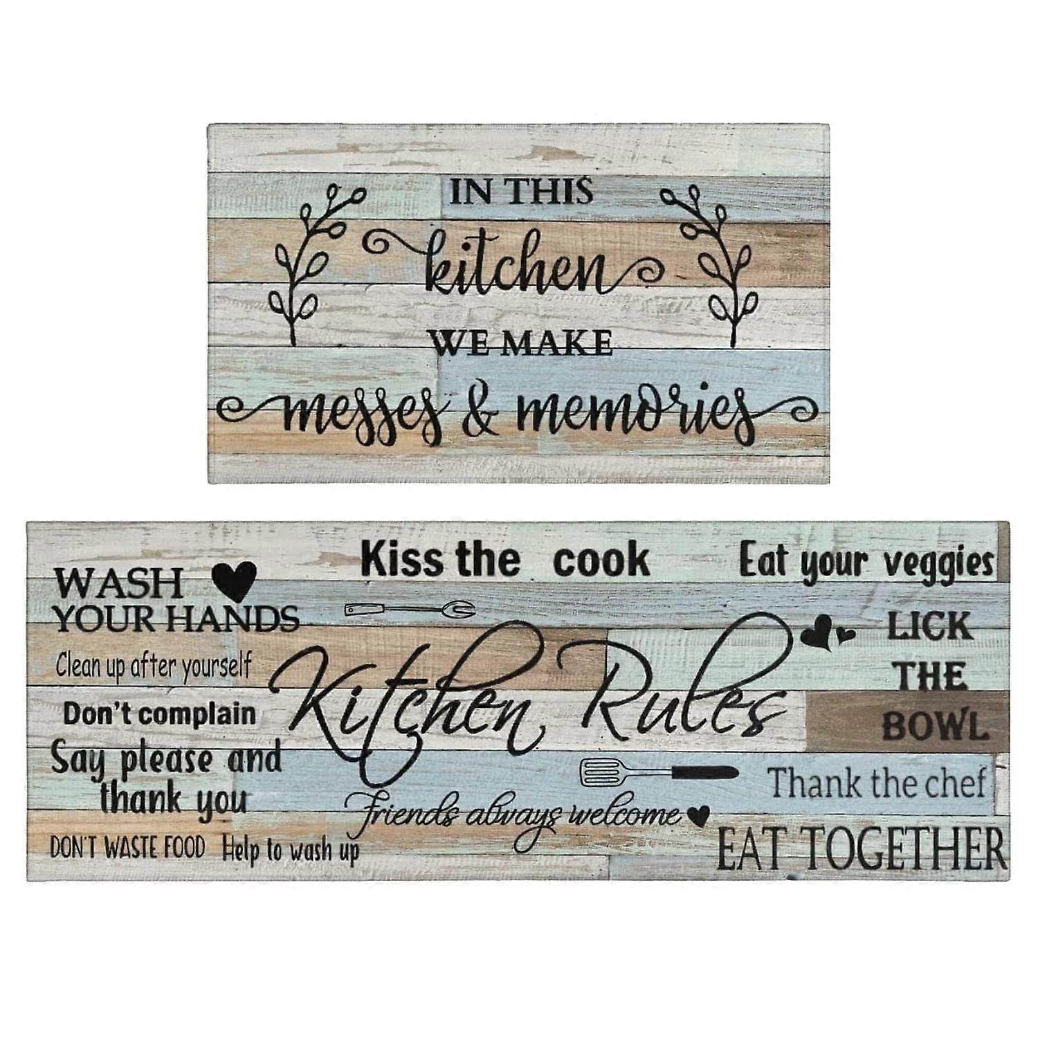 2 Piece Kitchen Rug Sets Non Slip Washable 17"x30" + 17"x47" for Floor Mat Decor in Modern Style and Durable Material