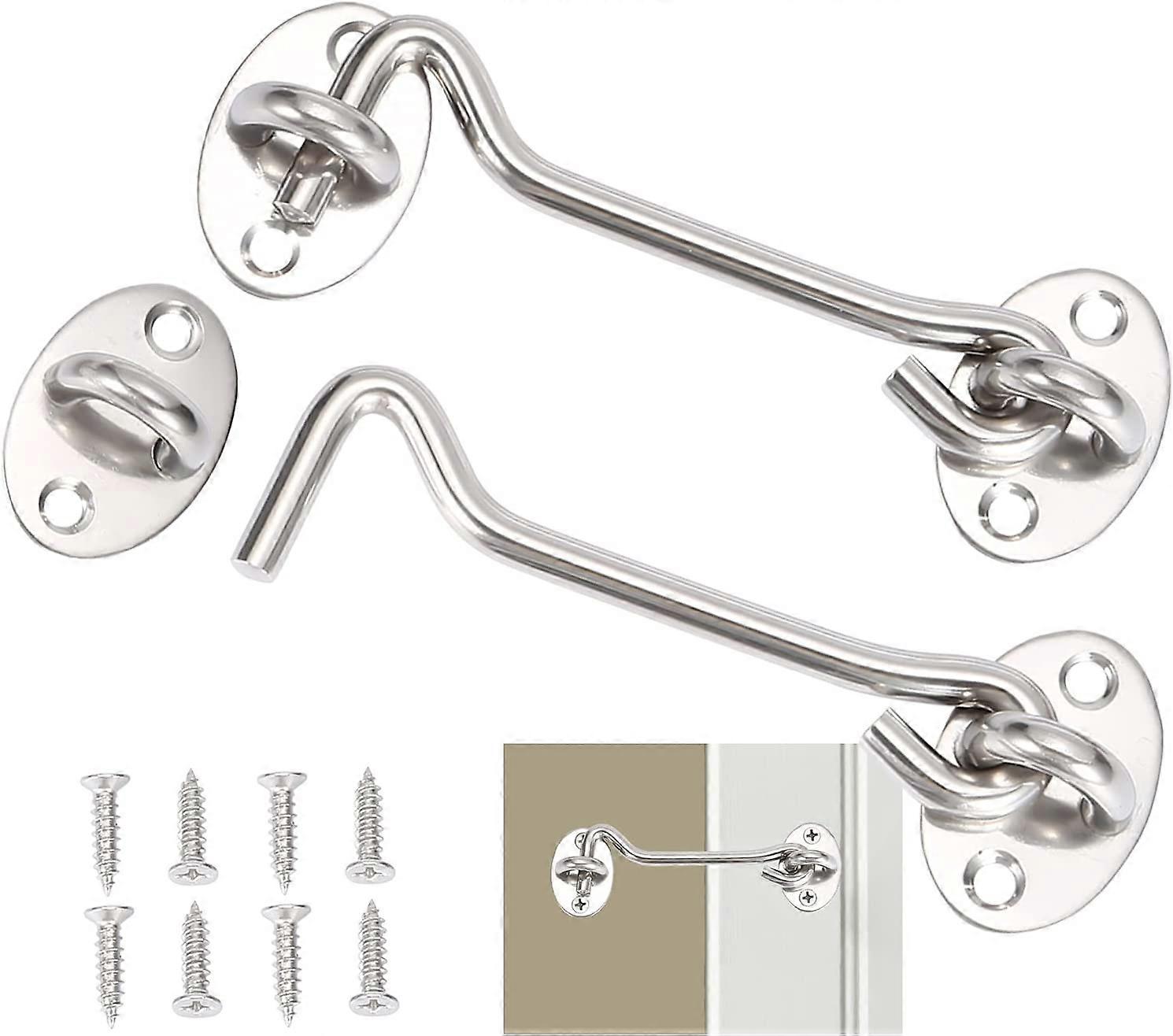 2 Pieces Cabin Hook,Door Latch Hook,Silver Stainless Steel Door Hook Lock,With Mounting Screws,For Window,Barn Door,Shed Door,Garage Door (10)