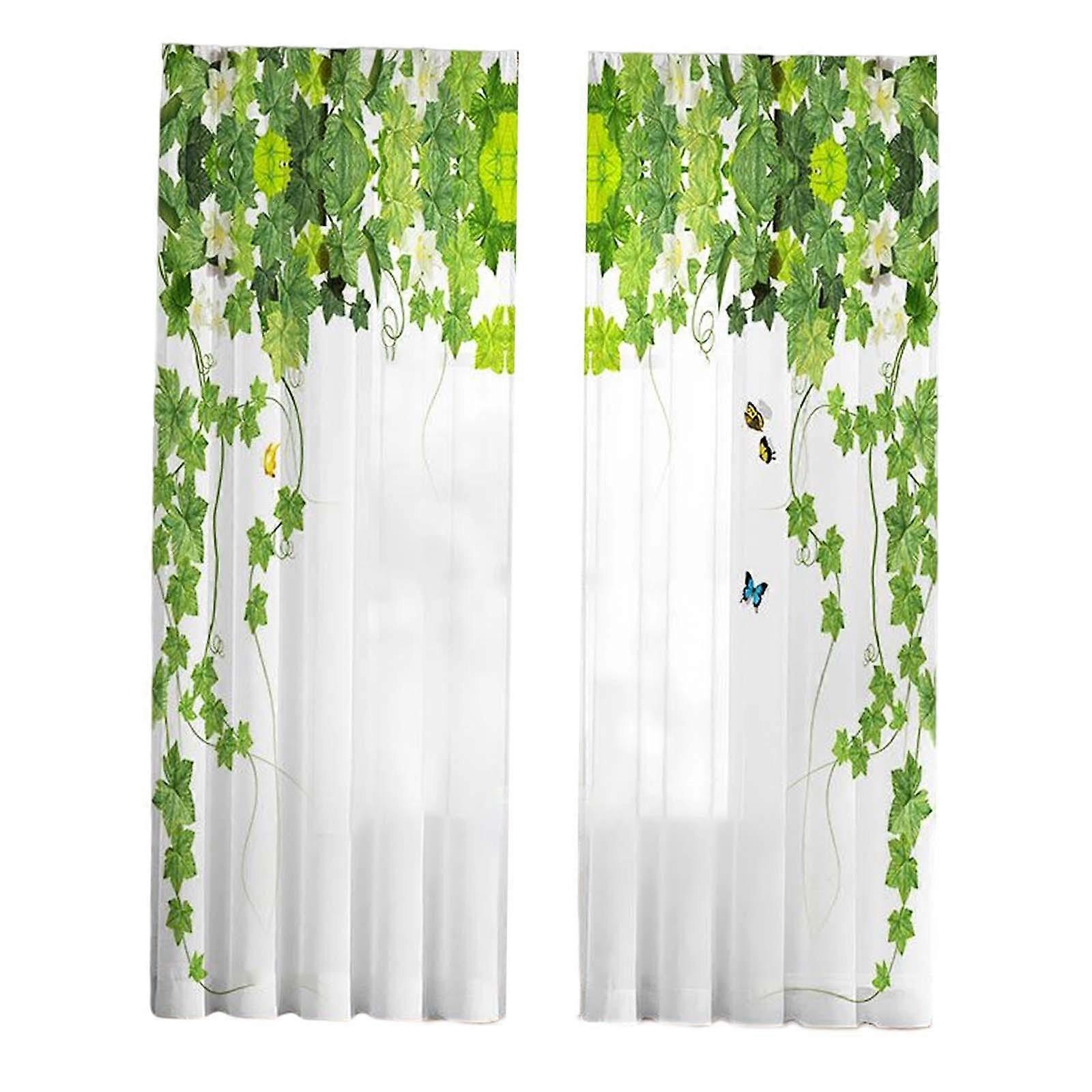 2Pcs Green Leaf Curtain Rod Pocket Voile Drape Home Fashions Darkening Window