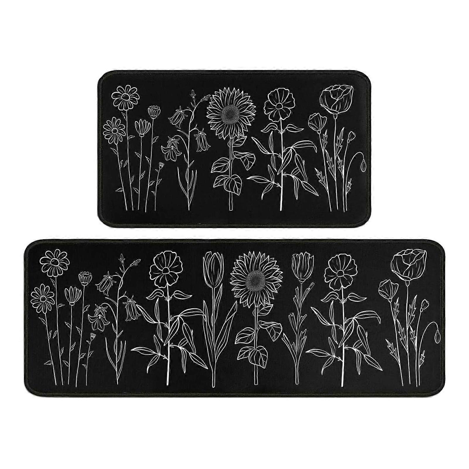 2Pcs Cushioned Rug Anti-Fatigue Mat Wear Resistant Non-Slip Design Waterproof Easy to Clean Floor Mat Area Rug Decoration