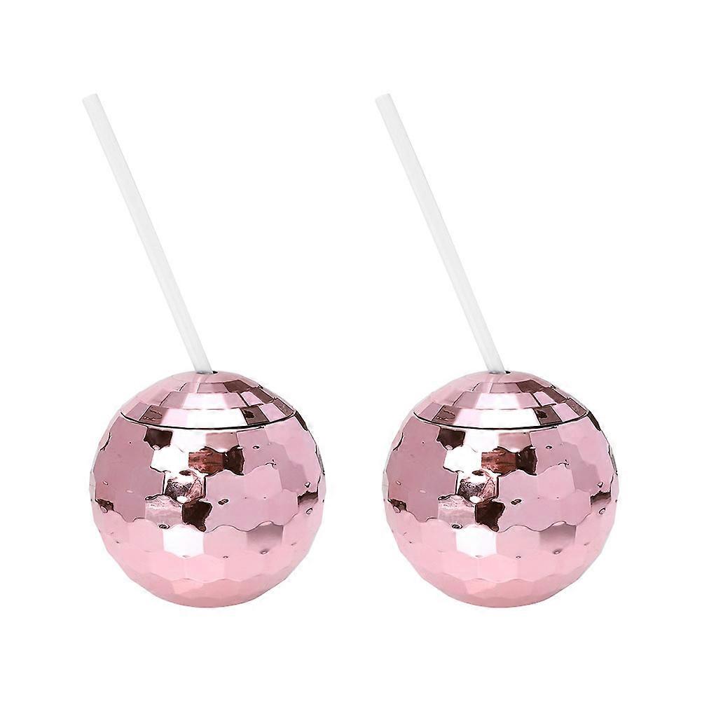 2pcs Creative Flash Ball-shaped Wine Cup Disco Ball-shaped Beverage Cup with Straw for Party