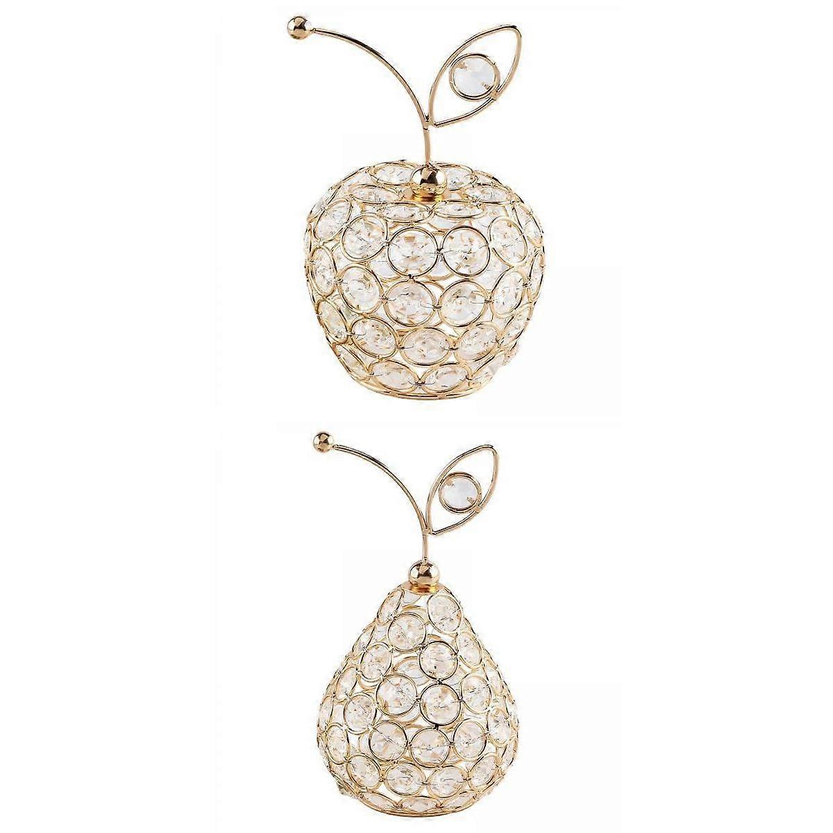 2Pieces Crystal Fruit Statue Art Crafts Figurine for Tabletop Dining Room