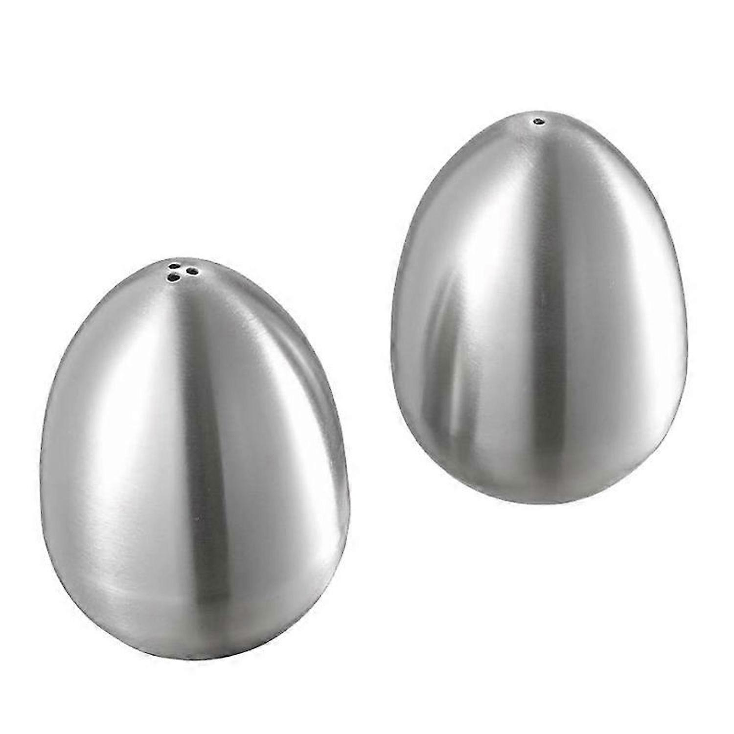 2 Pieces Stainless Steel Pepper Shaker Egg Shaped Salt Shaker Set Kitchen Tool
