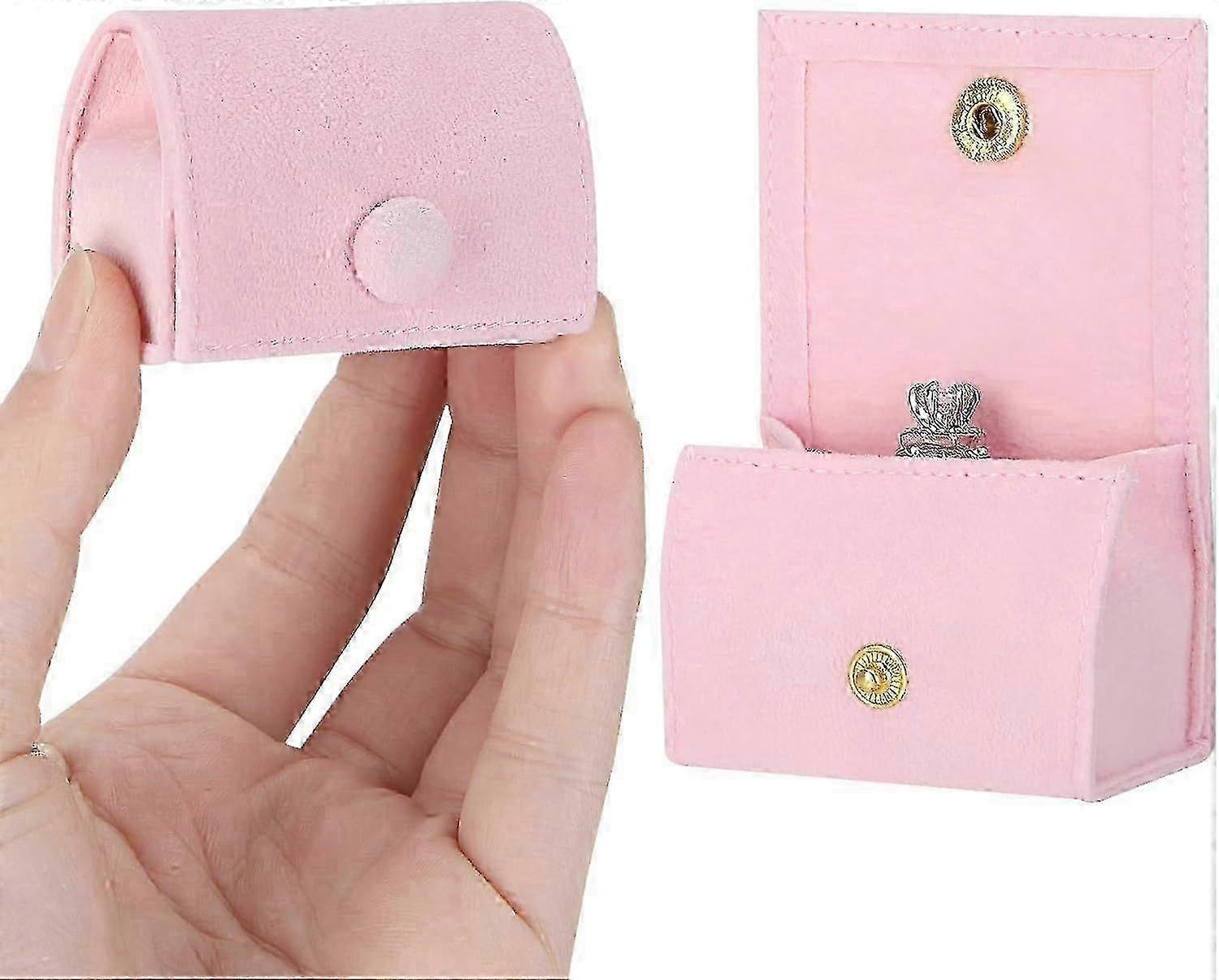 2 Pieces Small Velvet Travel Ring Holder Box, Portable Mini Jewelry Earring Necklace Storage Gift Boxes for Women Girl Gym Work (Pink)