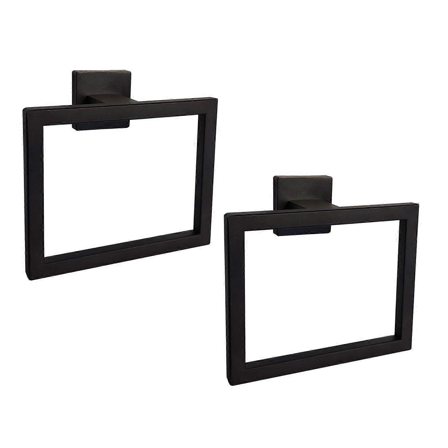 Square Towel Ring Set of 2, Wall-Mounted Hand Towel Holders, Matte Black Stainless Steel Bathroom Accessories