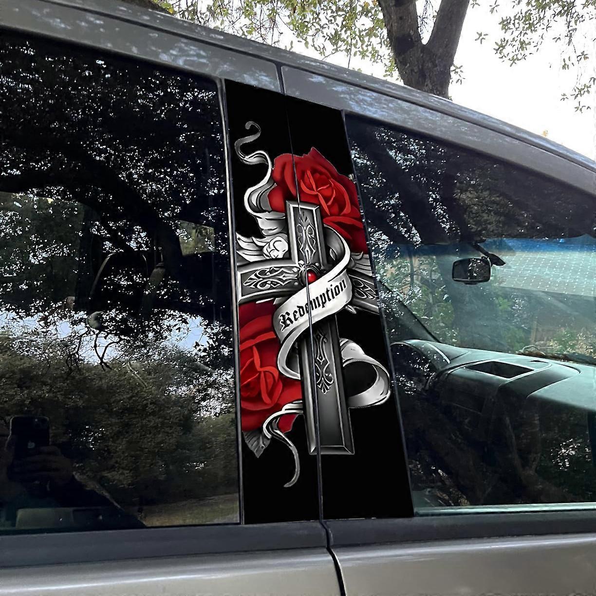 2pcs Set Magic Luminous Angel Wings and Red Rose Cross Car B Pillar Sticker Car Parts Car Sticker