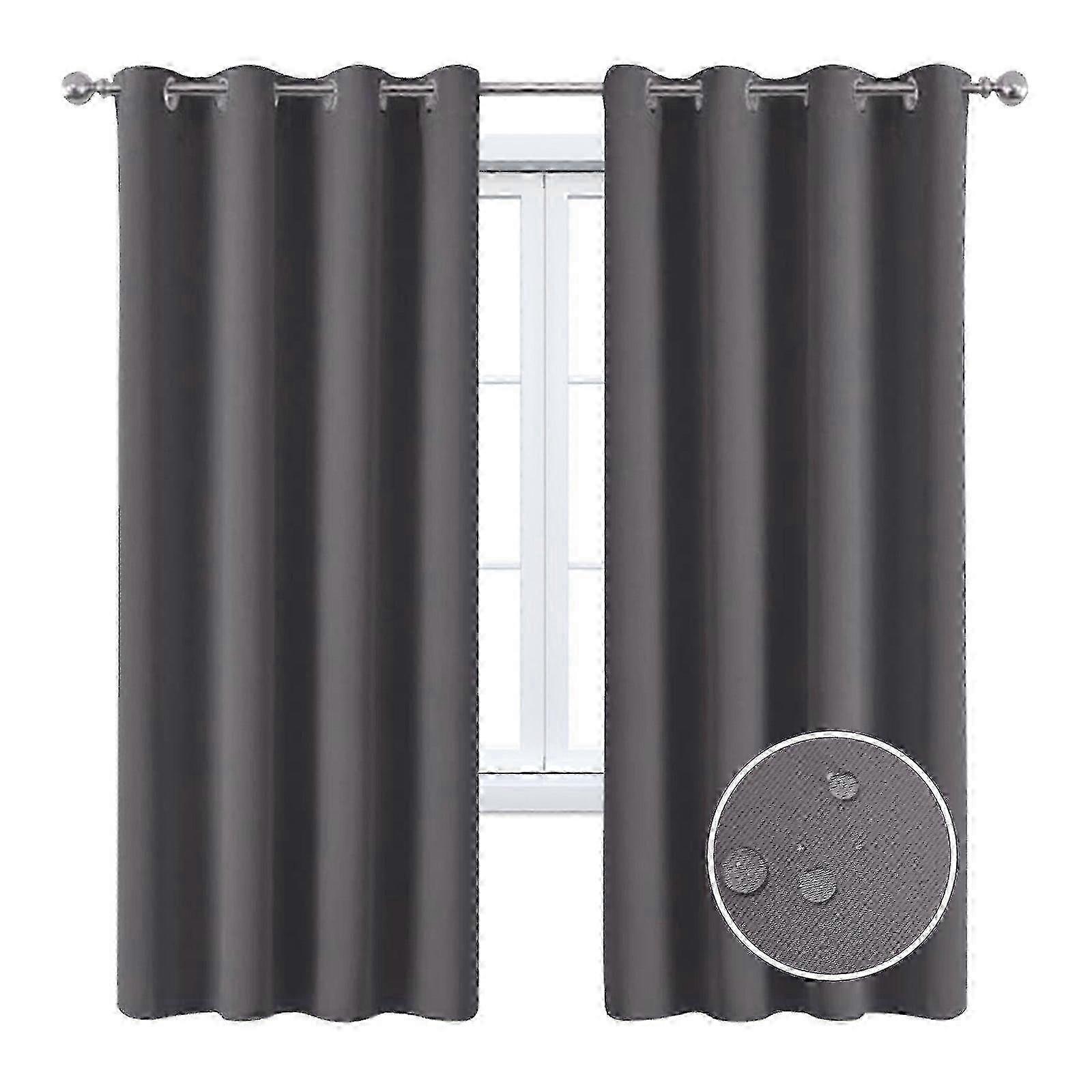 2 Pieces Solid Indoor/outdoor Light Filtering,waterproof Grommet Top Curtain Panel,grey