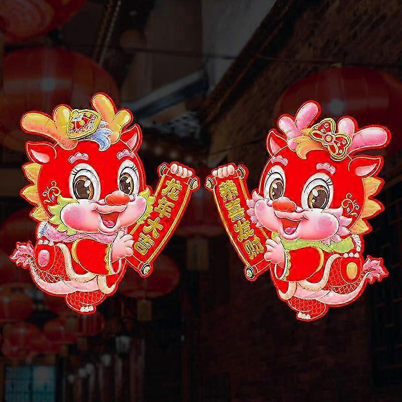 2Pcs Dragon Door Stickers Spring Festival Door Decals New Year Decorations Dragon Year Stickers