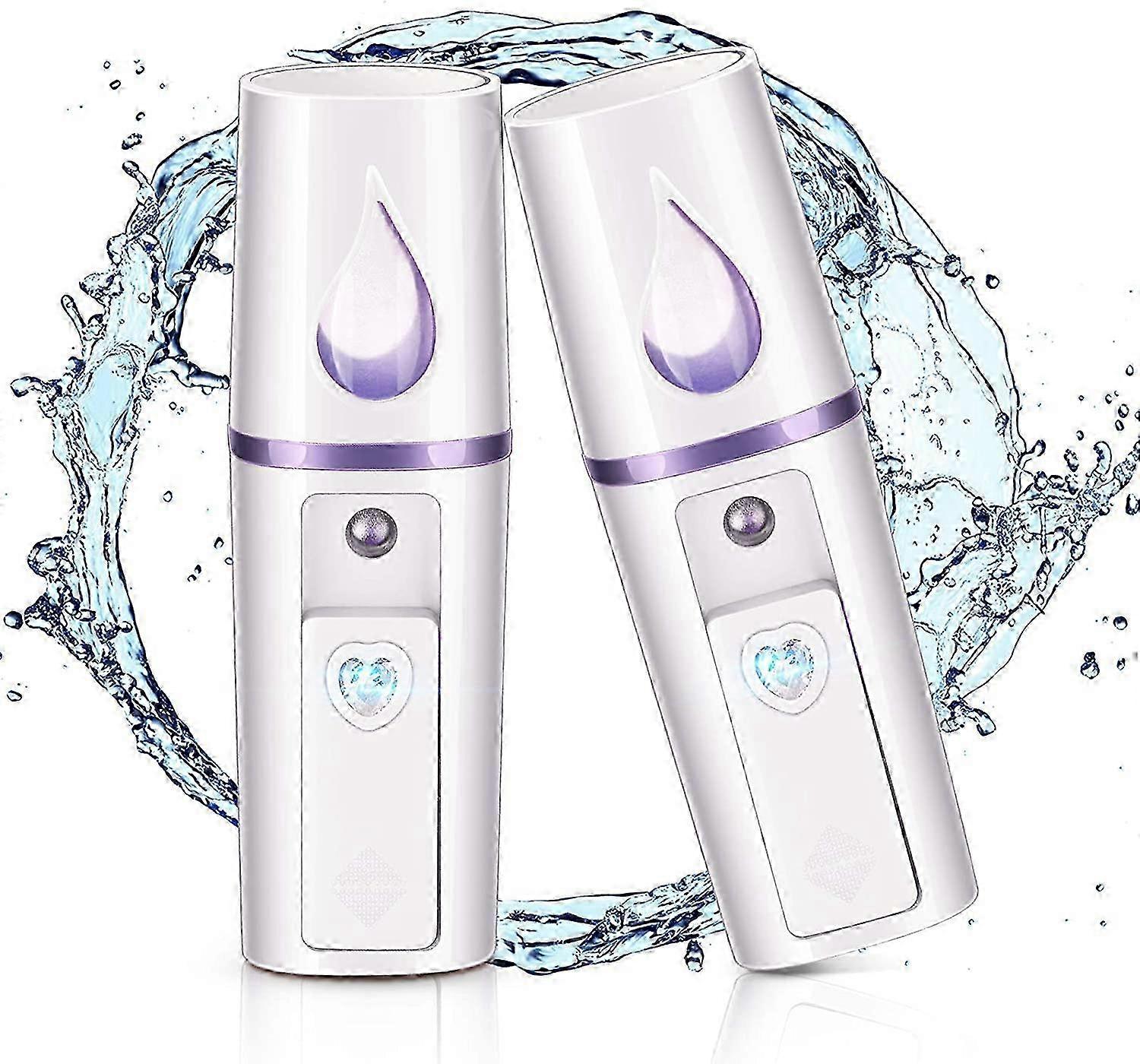 2 Pieces Nano Facial Mister Portable Mini Face Mist Steamer Handy Mist Sprayer with Mirror Design Moisturizing and Hydrating for Eyelash Extension (Wh