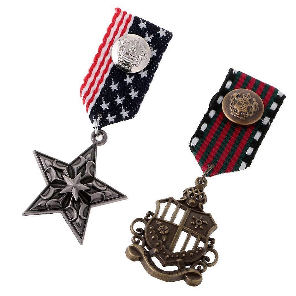 2Pcs Punk Vintage Navy Badge Brooch Pin Star Metal Collar Tips Pin for Men's Suit Colorful