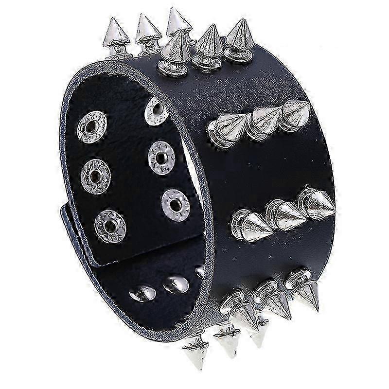 2 pieces Punk Leather Bracelet, Retro Steam-punk Pu Bracelet Metal Studded Wristband