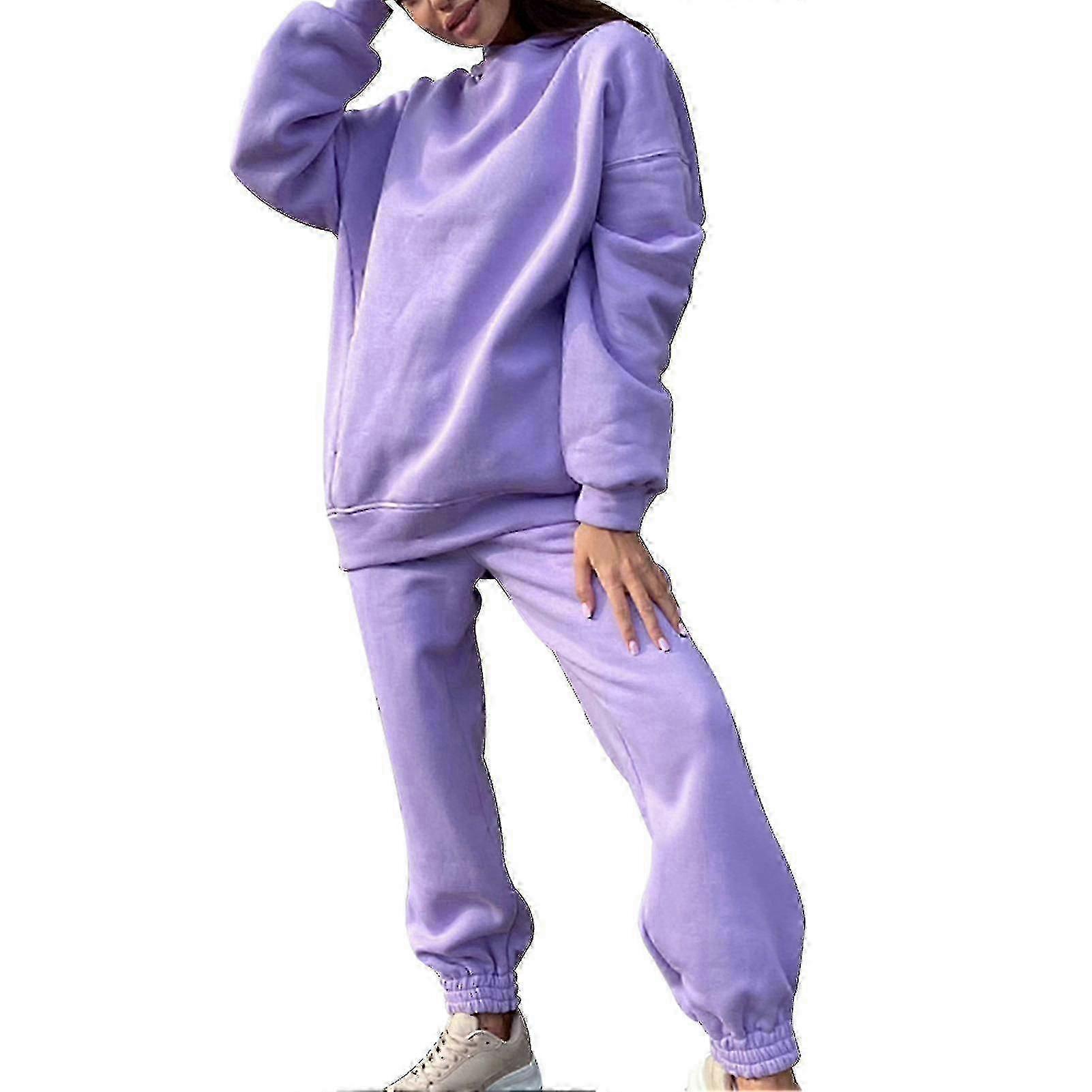 2-piece Hoodies Set Solid Color Pullover Sweatshirt & Sweatpants Thick Tracksuit