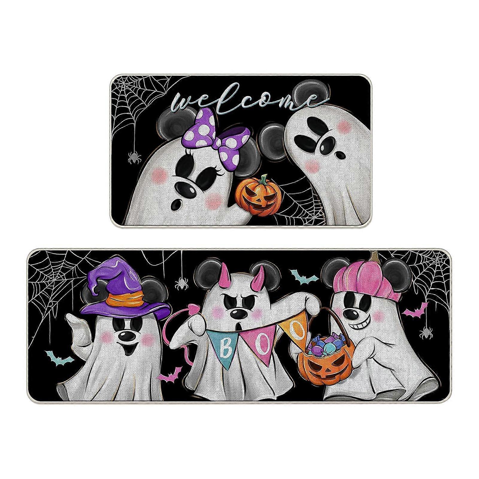 2 Pieces Halloween Doormat Non Slip Washable Area Carpet Halloween Floor Mat Set A