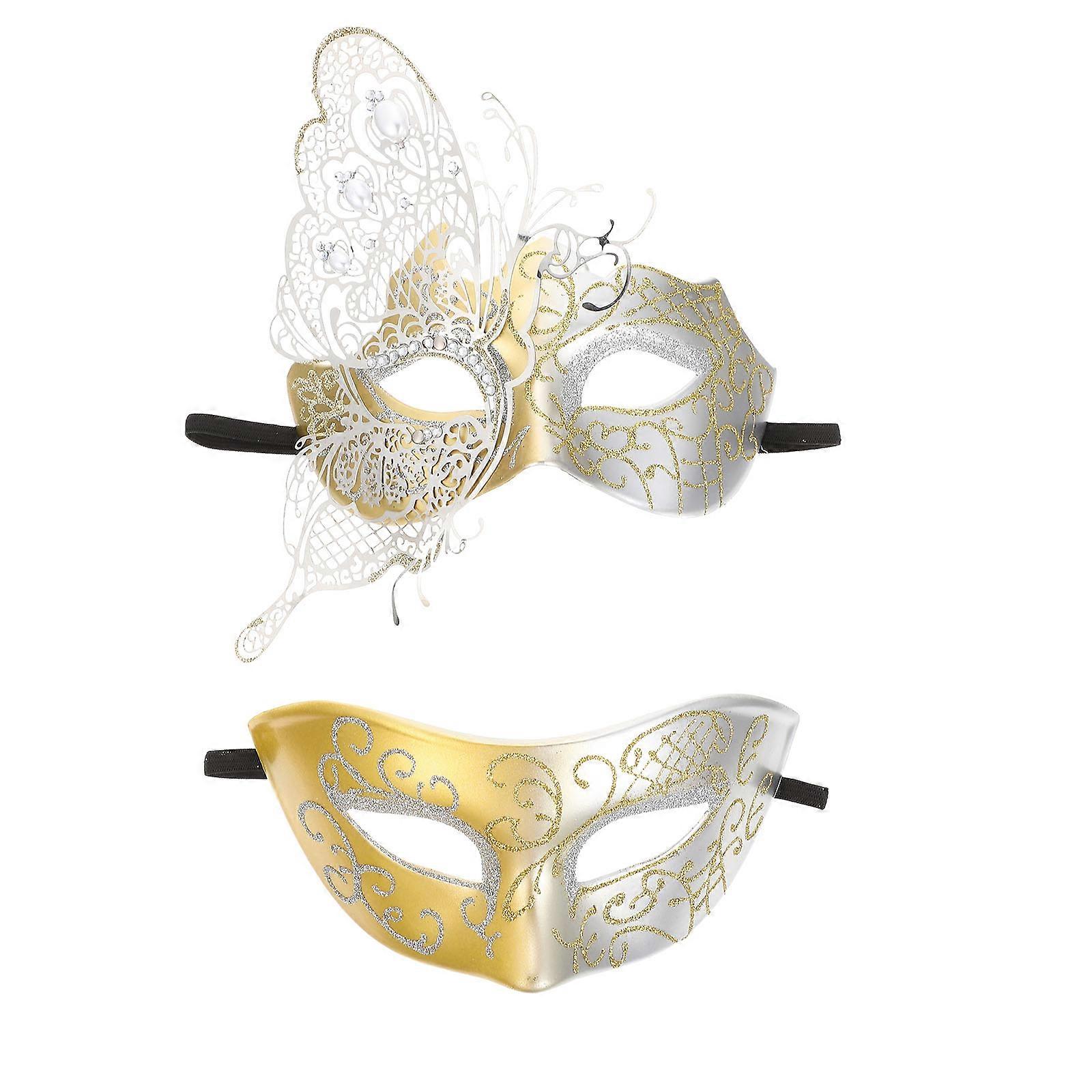 2Pcs Halloween Couple Masks Butterfly-designed Masks Eye Masks for Women Golden