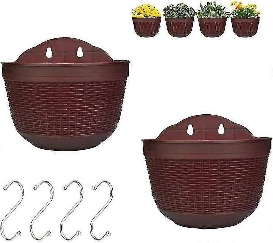 2 Pieces Plastic Hanging Flower Pots, Metal Hanging Flower Pots, Garden Hanging Baskets for Cultivation and Decoration