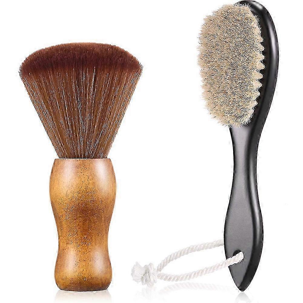 What you obtain: you will receive 1 piece barber fade brush and 1 piece neck duster brush in , the 2 different tools are enough for your beard styling and hair cutting needs<br> Beard brush: consists of bristles with proper hardness and solid wooden handle, comfortable to press contact and easy to operate, designed with a lanyard at the handle, convenient to hang and the brush after using<br> Neck duster brush: the bristle of this neck duster brush is soft and delicate, can effectively comfortably wipe the broken hair and dust from your ears and neck, the wavy style of handle makes it cozy to hold and beautiful to look<br> Practical usages: beard styling cleaning brush and hair cutting neck duster brush are good for cleaning the broken hair, cleaning or styling your beards, practical tools to of your hair and beard regularly, add a delicacy to your outlook<br> Necessary tools: these hairdressing brush sets are suitable for both professional hair , barber and personal home needs, necessary tools for men and hairdresser<br> colour:black + wood color<br> material: beech wood + fiber hair + animal hair<br> Package Contents:<br> 2 x barber brush<br> Only the above package content, other products are not included.<br> Note: Light and different displays may cause the color of the item in the picture a little different from the real thing. The measurement allowed error is +/- 1-3cm.