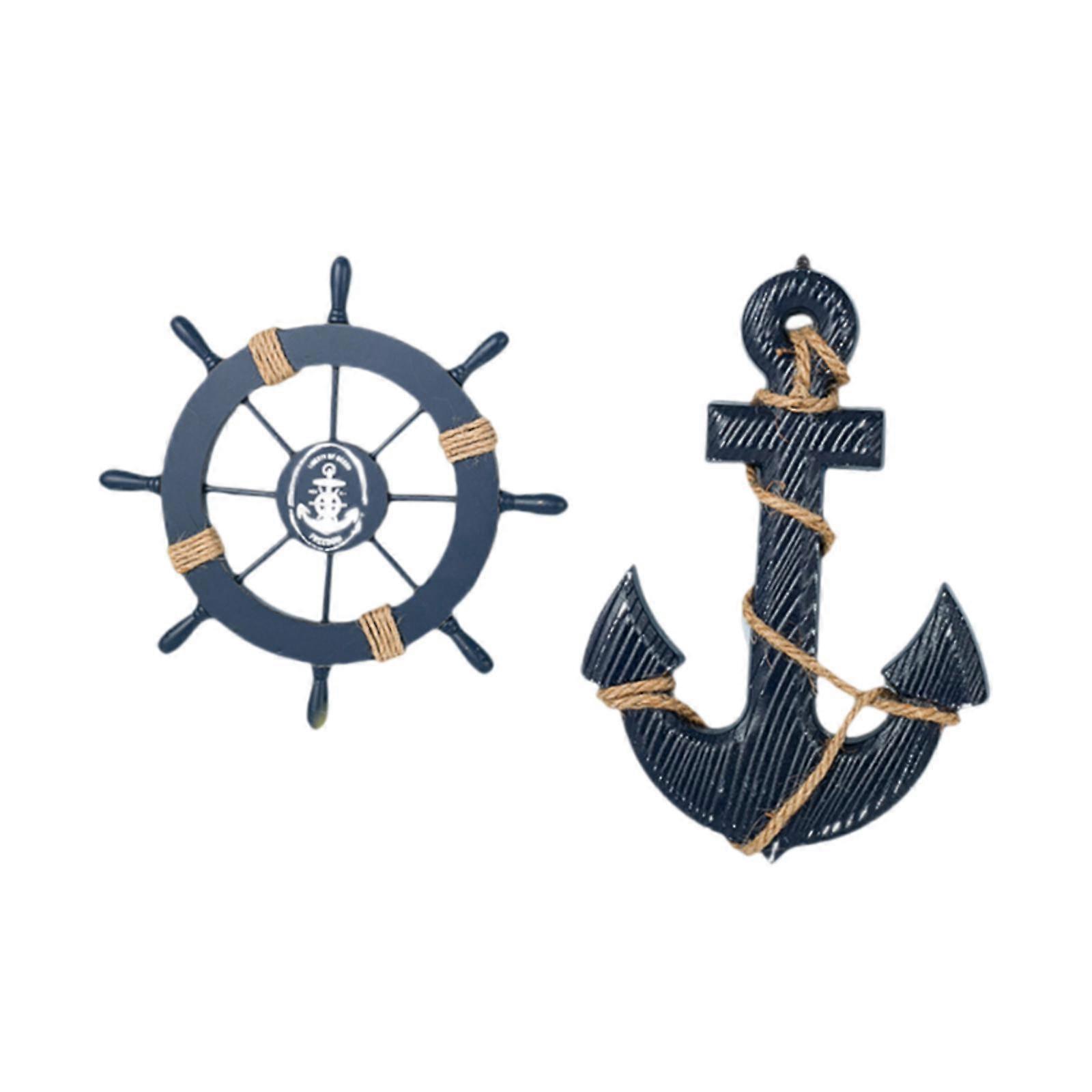 2 Pieces Marine Anchor Nautical Wheel Wall Decor for Club Bedroom Restaurant