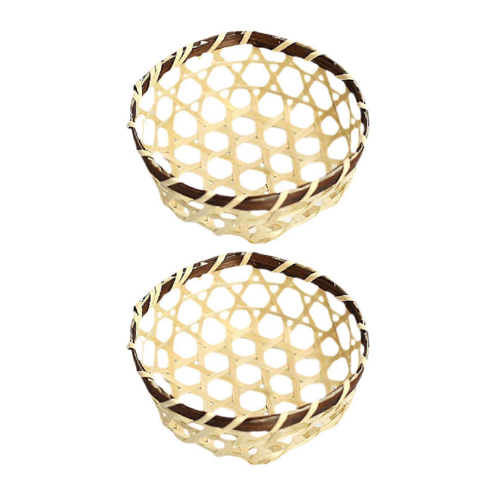 2 Pieces Mini Woven Baskets Bamboo Serving Basket Tray, Decorative,Handmade