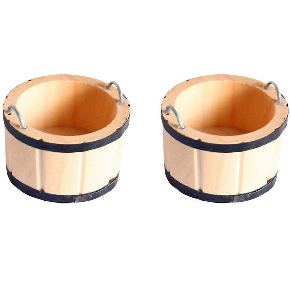 2Pcs Miniature Rustic Wooden Barrels Miniature Wood Bucket with Handle Kids Pretend Play Toys