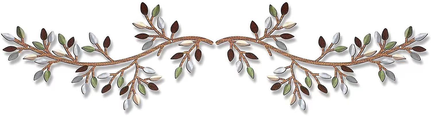 2 Pieces Metal Tree Leaf Wall Decor Vine Olive Branch Wall Art Wrought Iron Scroll Sculptures Above the Bed, Living Room, Outdoor Decoration Multicol