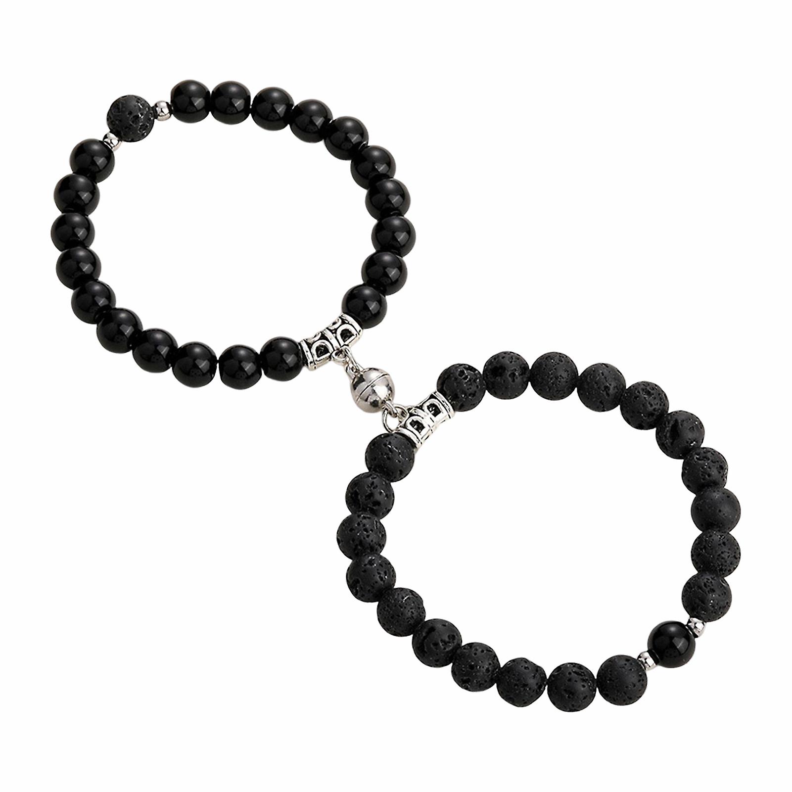 2Pcs Unisex Bracelets Beaded Magnetic Jewelry Frosted Stone Anti-fade Bangles for Dating
