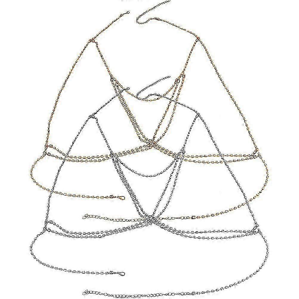 2 pcs Rhinestone Chain Bra Rhinestone Body Chains Sexy Body Chain Jewelry for Women