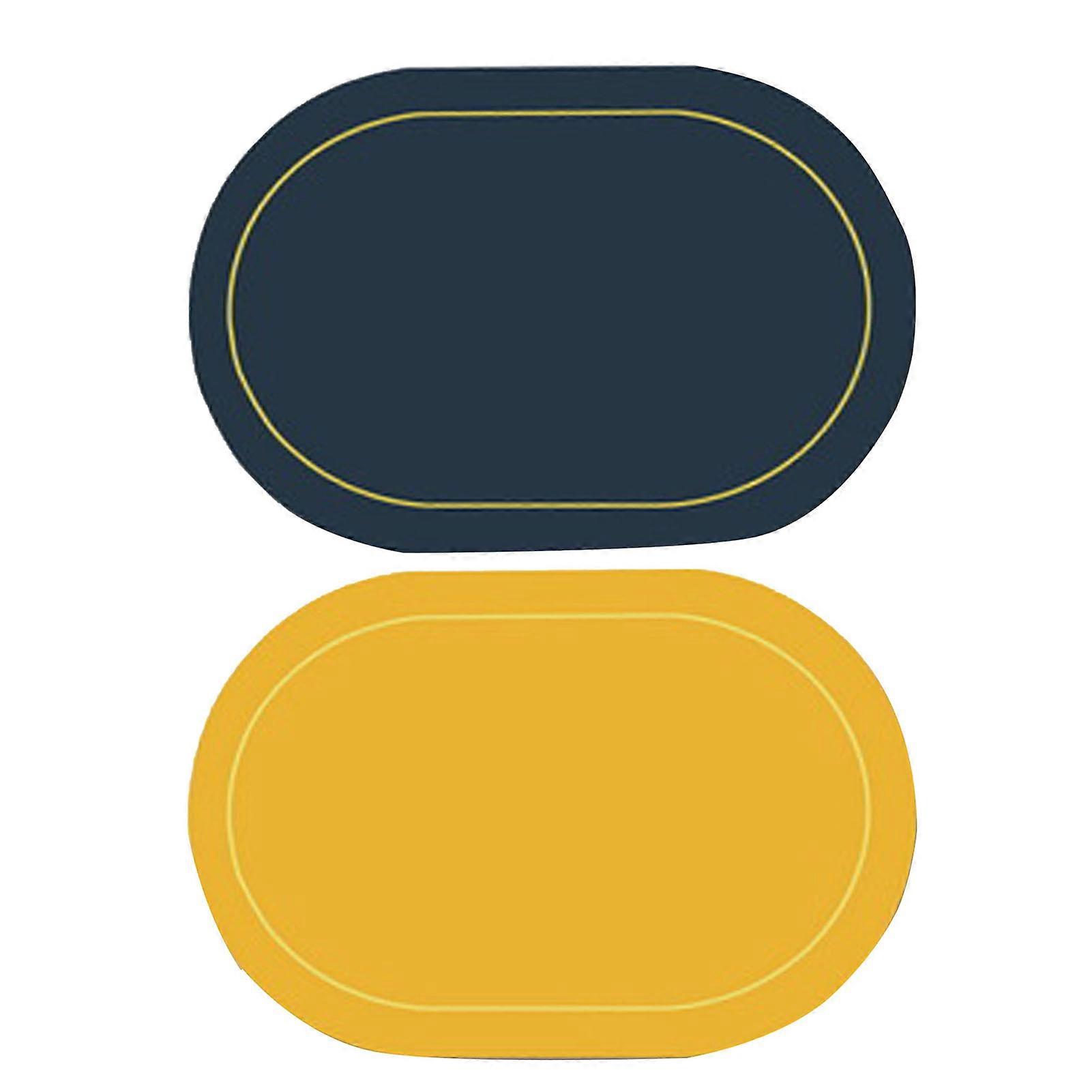 2Pcs Leather Oval Dining Food Mat Oil Proof Insulation Restaurant Table Home Hotel Non Slip Bowl Pad Placemat Blue