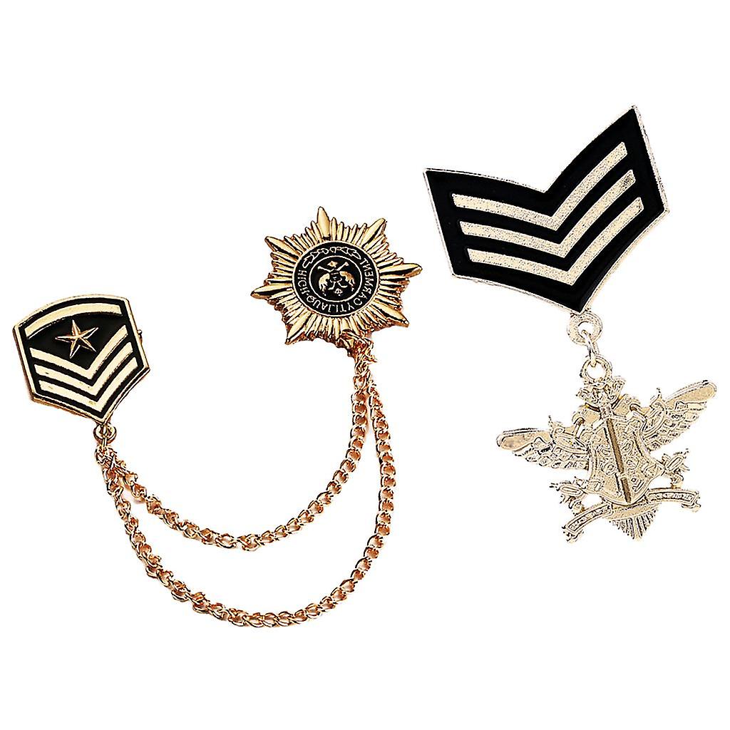 2 Pieces Retro Alloy Chain Brooch Pins Star Shield Army Badge Men Accessory