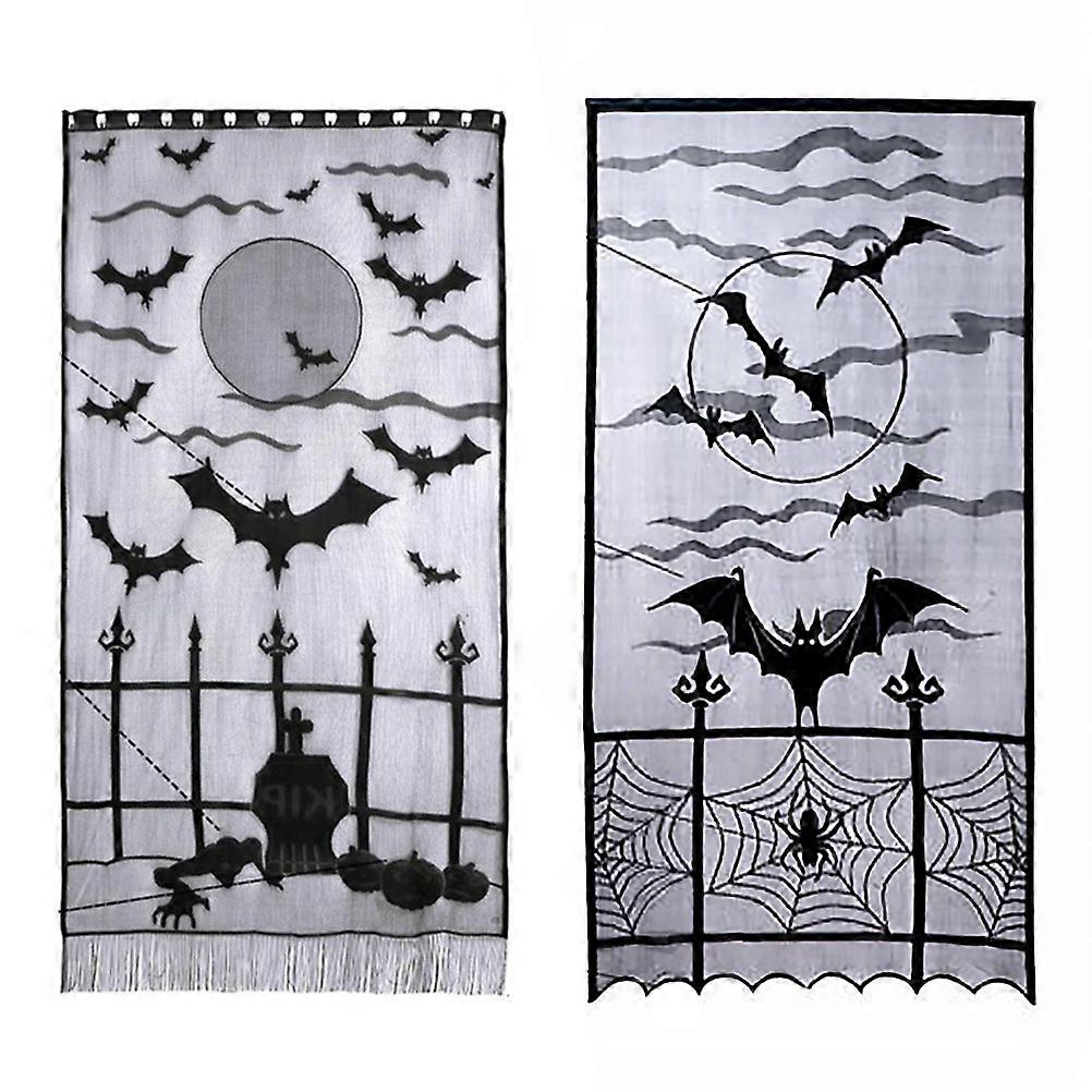 2Pcs Lace Door Curtain Decoration Halloween Window Curtain Decoration for Home