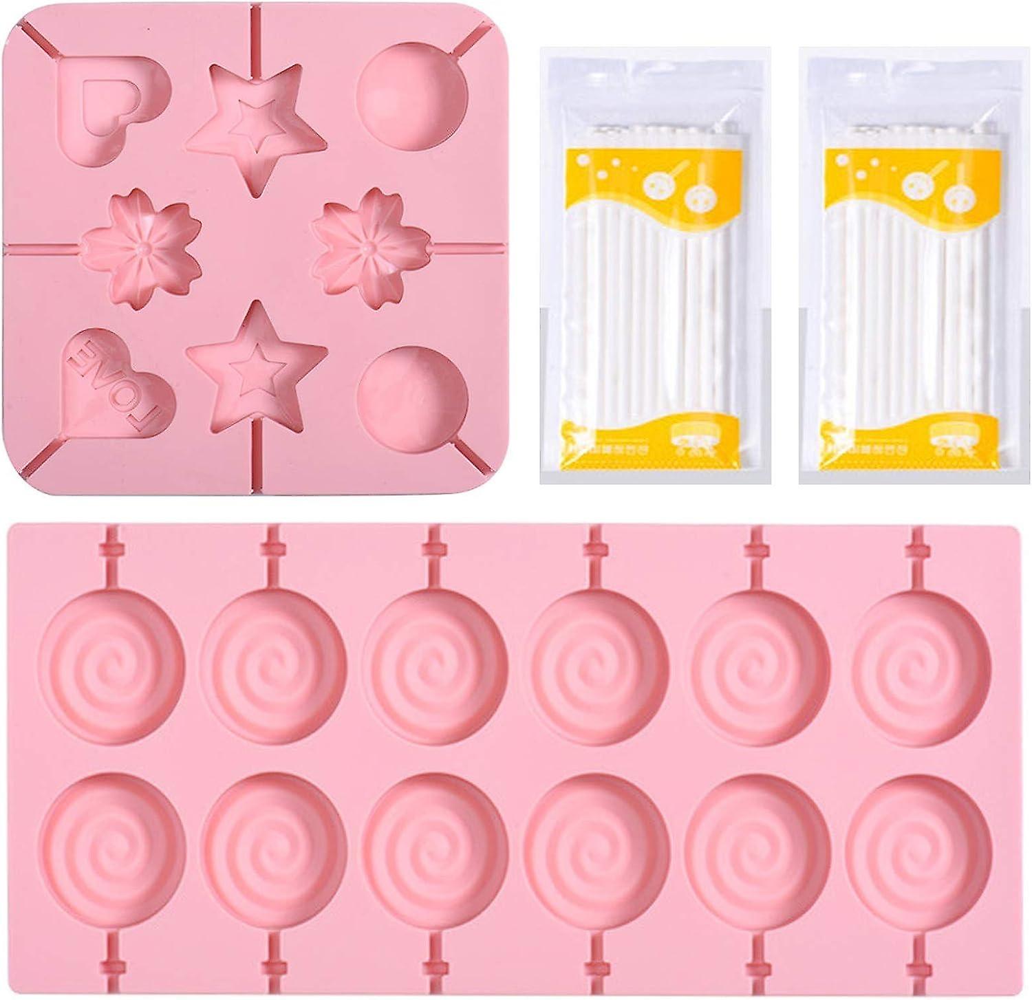 2 Piece Lollipop Chocolate Silicone Mold, with 40 Lollipop Sticks, Reusable Silicone Molds, for Maki