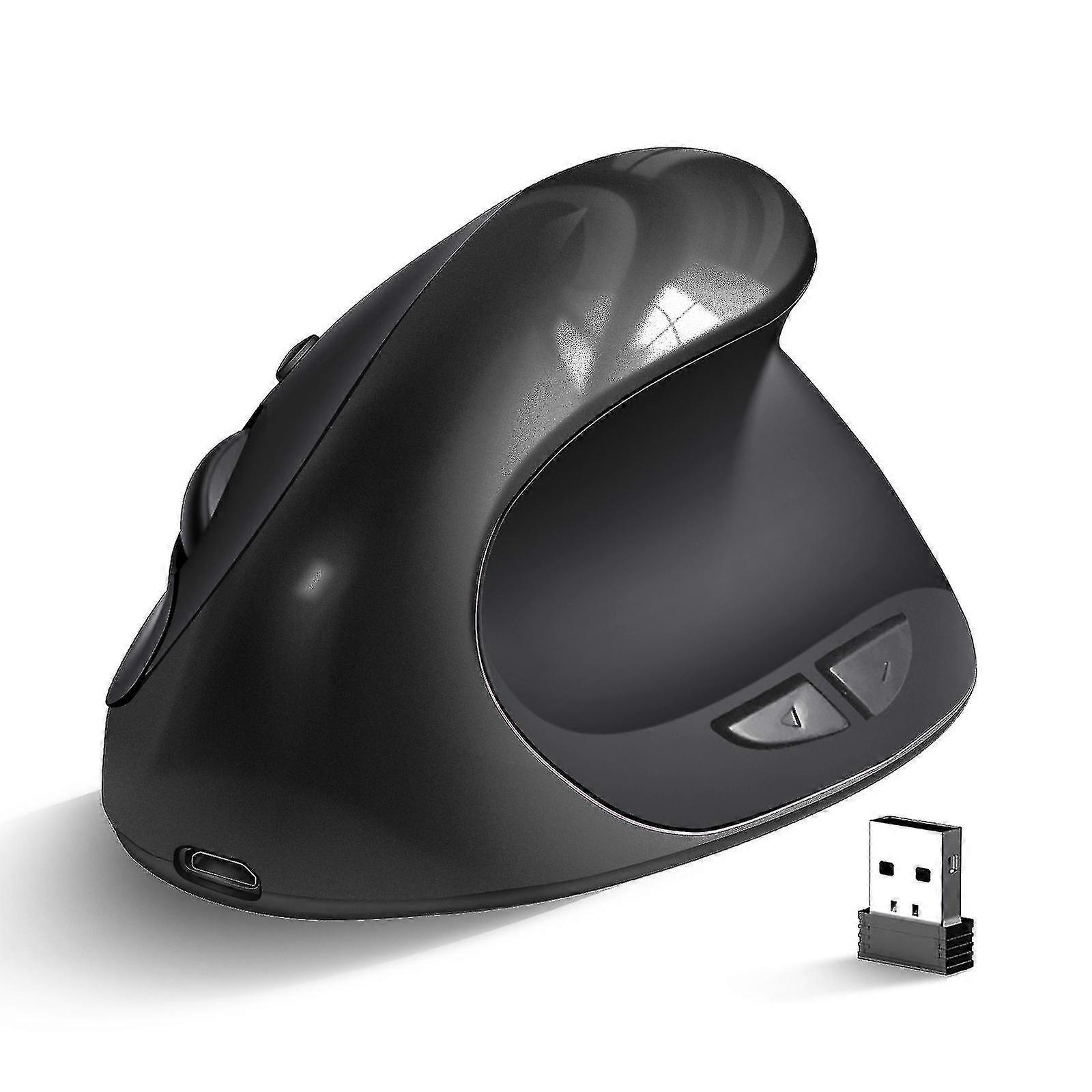 Two Pieces Wireless Mouse, Rechargable 2.4g Usb Vertical Ergonomic Mouse With 6 Buttons 3 Adjustable Dpi 800/1200/1600 Levels For Computer, Laptop, Pc