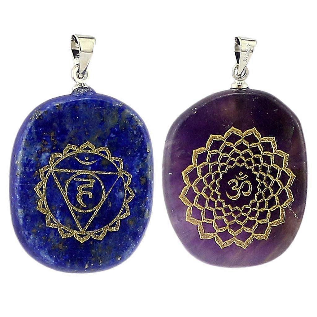 2 Pieces Engraved Reiki Crystal Pendants Natural Stone for Kids Friends Gift