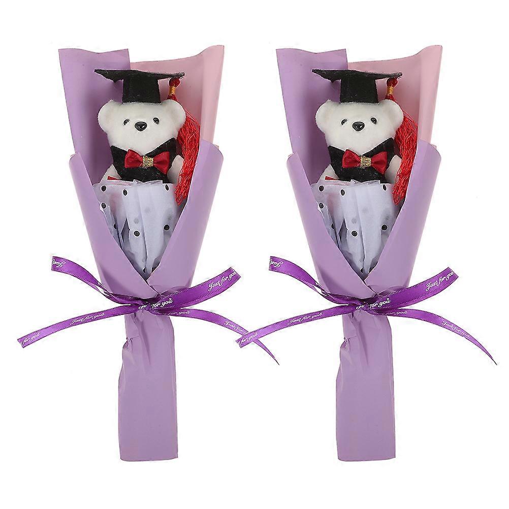 2Pcs Graduation Themed Bear Doll Bouquet Adorable Graduation Party Bouquet Grad Party Favor