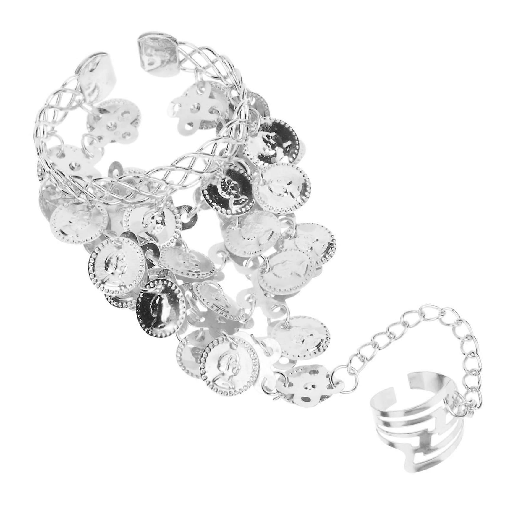2 Pieces Women's Belly Dance Jewelry Set Stylish Metal Belly Chain with Finger Ring Design for Dance Parties Yoga