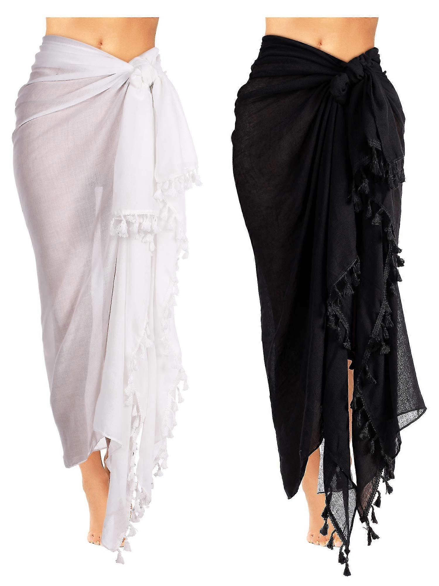 2 Pieces Women Beach Batik Long Sarong Swimsuit Cover Up Wrap With Tassel For Women Girls