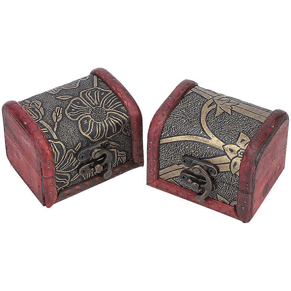 2Pcs Handcrafted Mini Wooden Delicate Vintage Jewelry Container Holder Storage Box
