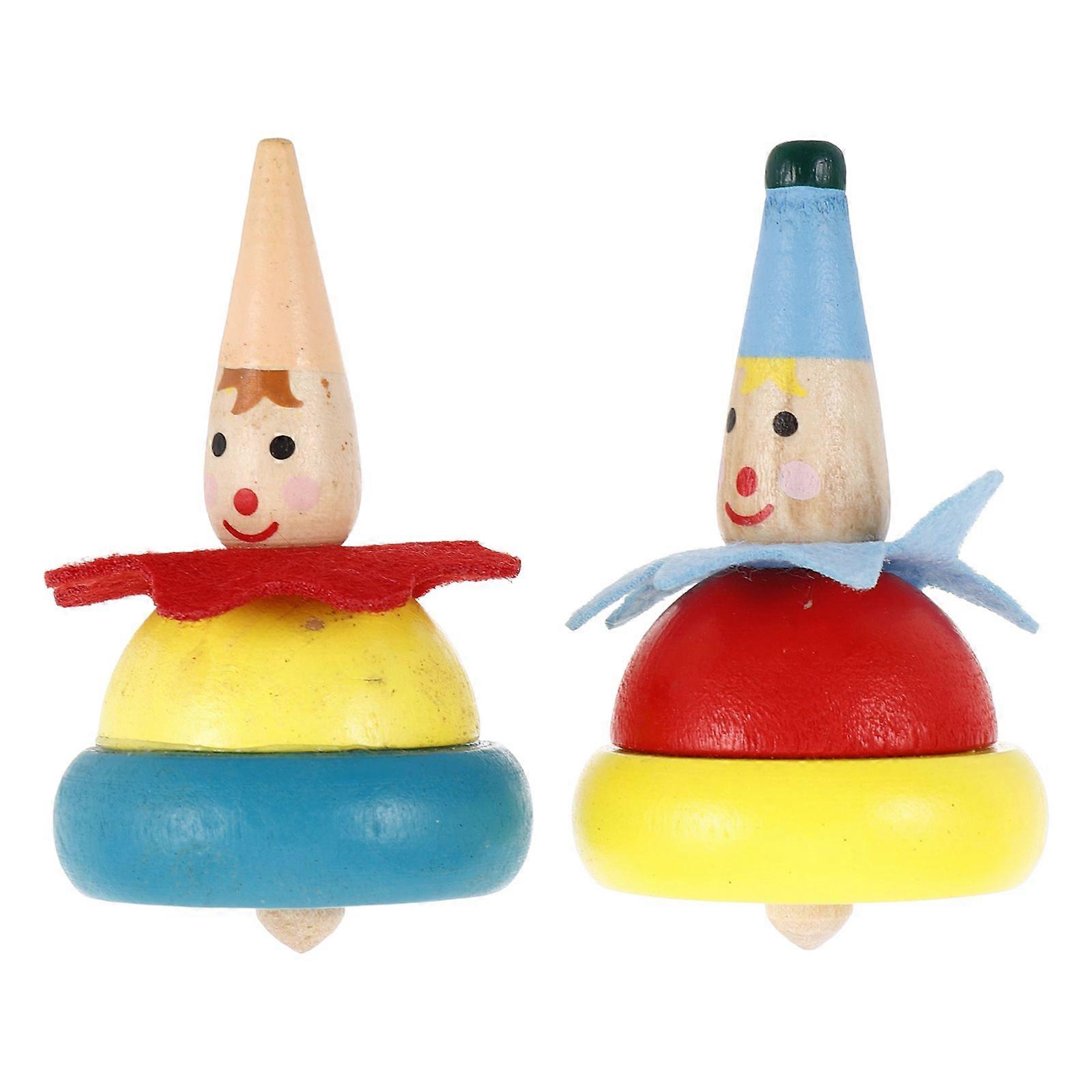 2pcs Handmade Painted Clown Wooden Clown Craft Tops Toy Wooden Toys Kindergarten Toys Intelligence Toy with Clown Styling and Bright Colors for Kids