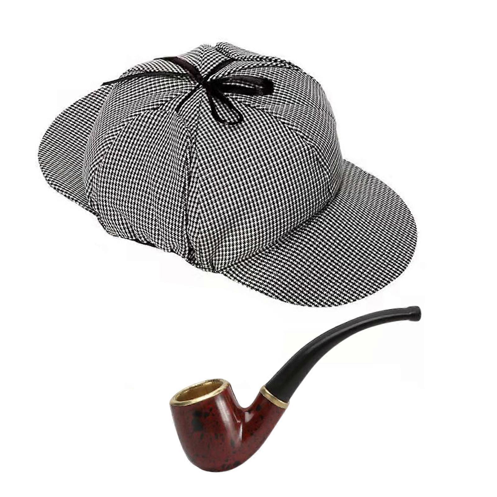 2 Pieces Detective Costume Accessories Smoked Pipes Cosplay Hat Costume Pipe Detective Costume Set for Man Black