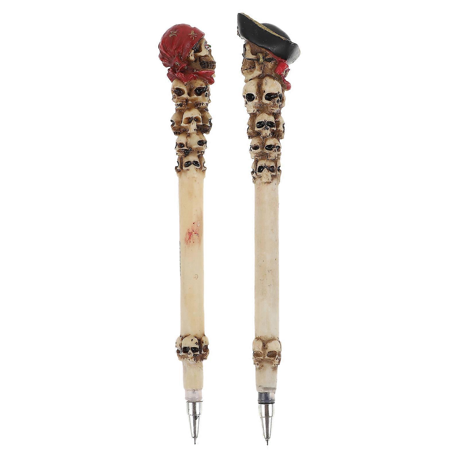 2Pcs Pirate Skull Writing Pens Resin Pens Adornment Children Skull Pens Toys