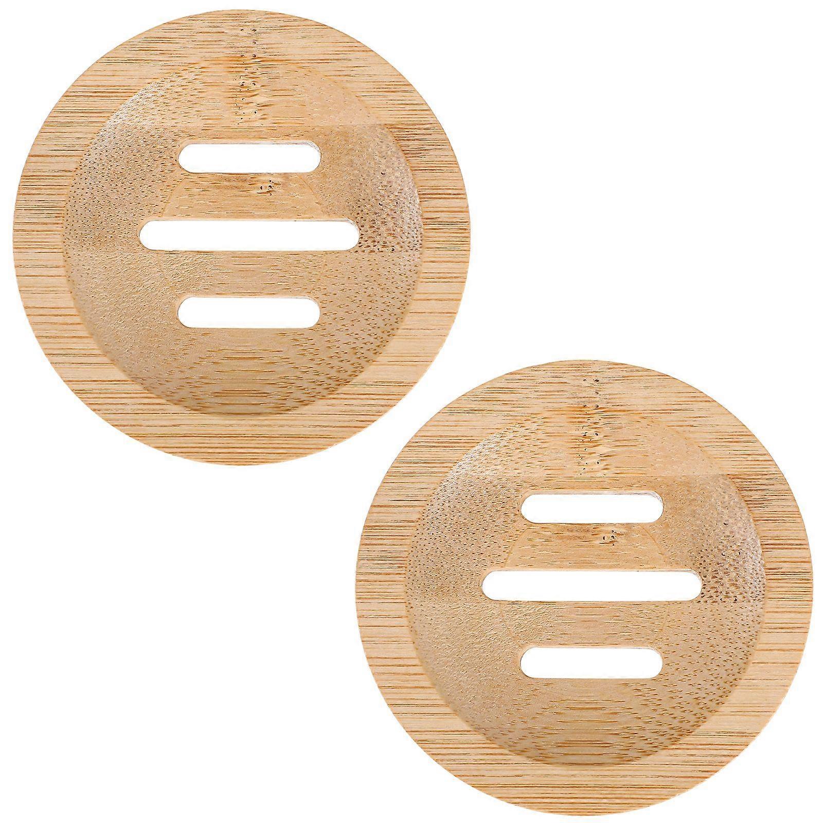 2pcs Soap Holders Bamboo Round Hollow Soap Box Container Soap Dish for Bathroom