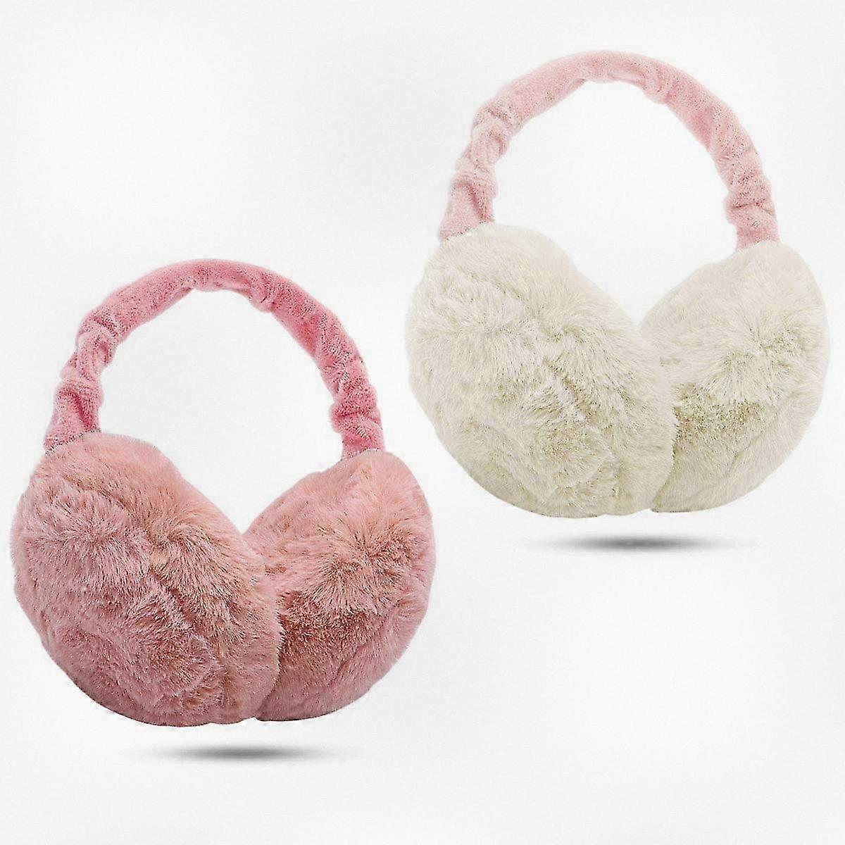 2-Piece Adjustable Faux Fur Winter Ear Warmers Windproof Plush Foldable Earmuffs