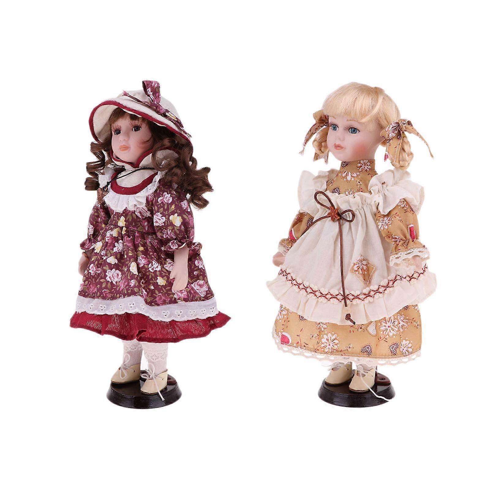 2Pieces 11.81inch Lovely Girls Porcelain Dolls in Clothes Hat Handmade Toy