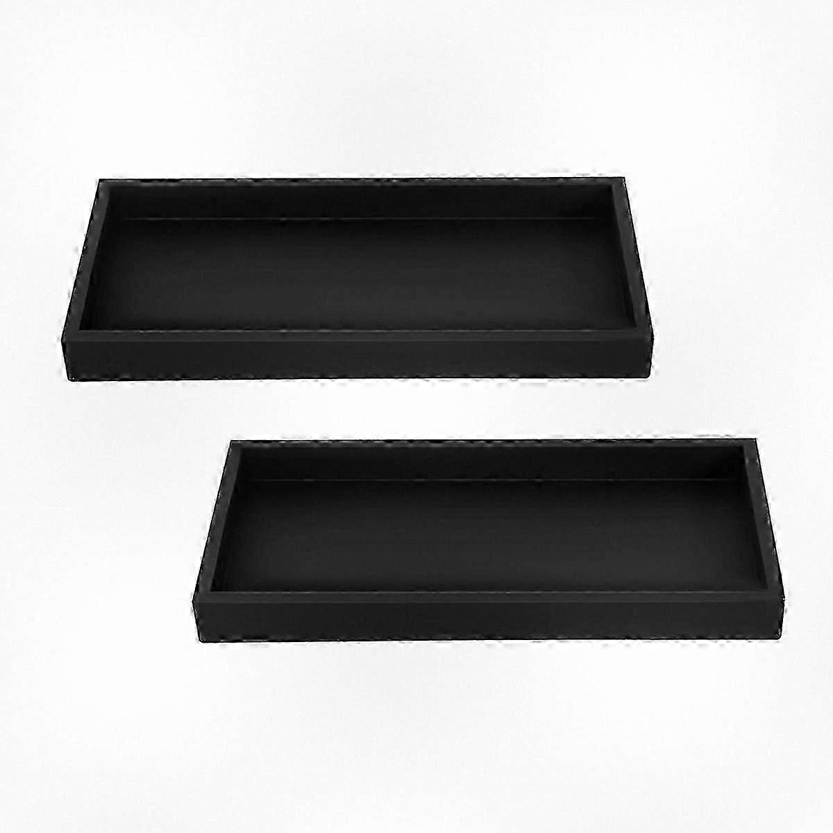 2 Black Silicone Bathroom Storage Trays, Decorative Organizer for Washbasin or Bathtub, Rectangle Design