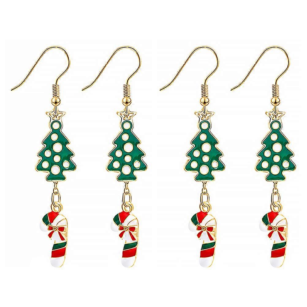 2 Pairs Christmas Tree Dangle Earrings for Women Festive Holiday Party Accessory, Stylish Xmas Jewelry for Moms, Girlfriends & Friends