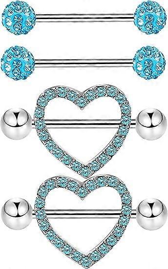 2 Pairs Stainless Steel Nipple Rings CZ Barbell Rhinestone Nipple Studs for Nipple Tongue Piercing