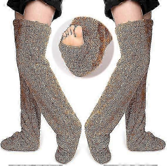 2 Pairs High Fuzzy Socks Over Knee Winter Leg Warmers Plush Slipper Socks For Sleep