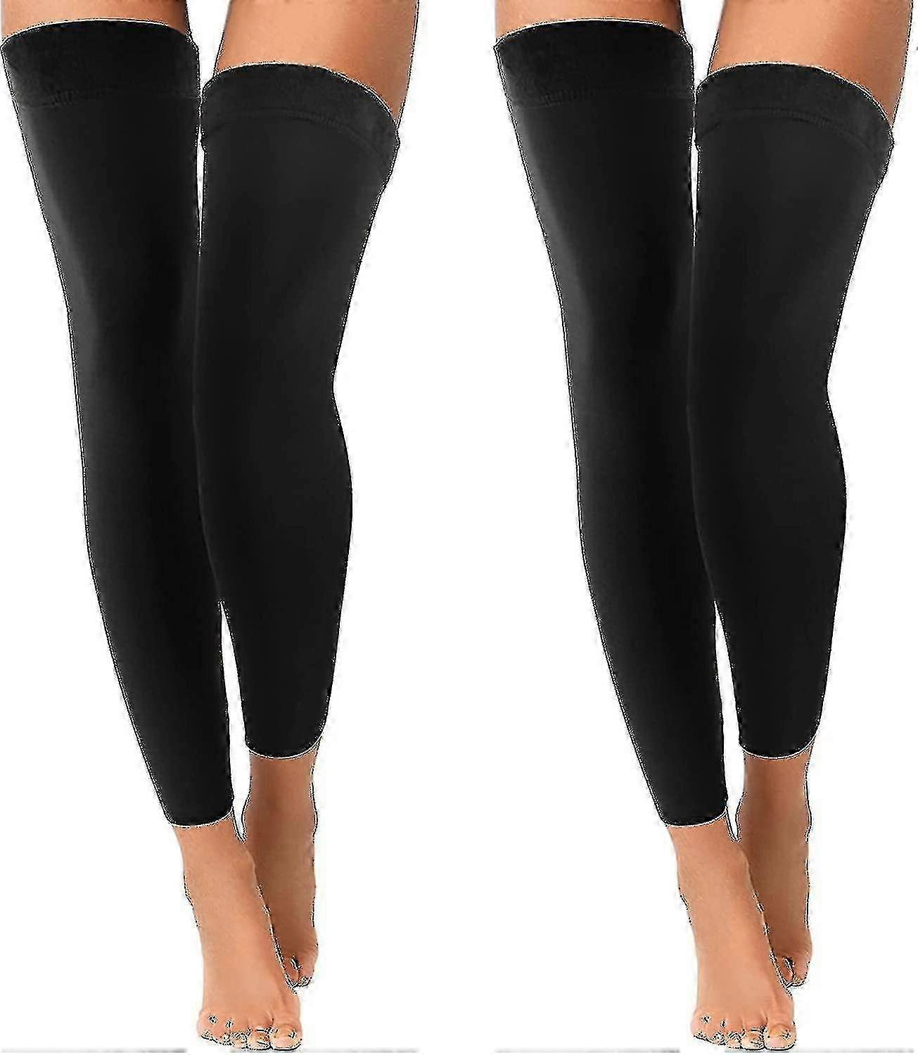 2 Pairs Women Over Knee Leg Warmers Extra Long Lining Elastic Socks