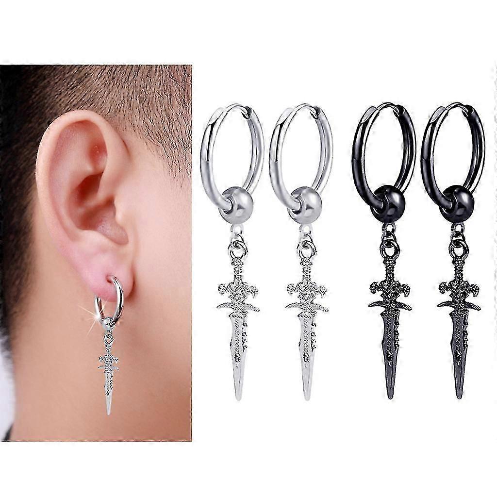 2 Pairs Stainless Steel Earring Long Dangle Ear Clip Earclip Black Silver